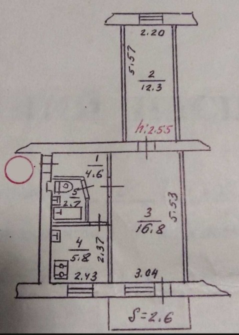 • Площадь кухни 5.8 м2
