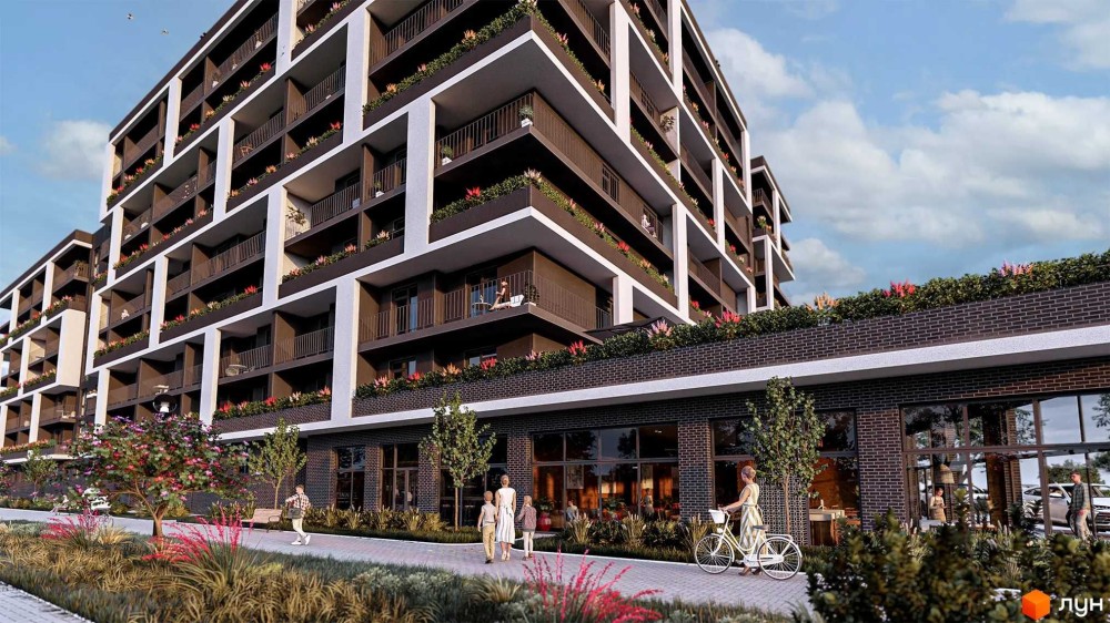 На першому поверсі будинку будуть комерційні приміщення, де мешканці зможуть насолоджуватися різноманіттям послуг та зручностей, які знаходяться поруч з їхнім житлом