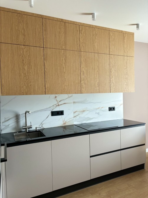 Дизайнерський ремонт. Продаж із меблями та побутовою технікою. Кухня з натурального дерева, кам’яна стільниця.