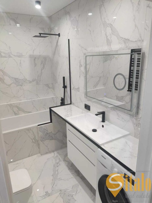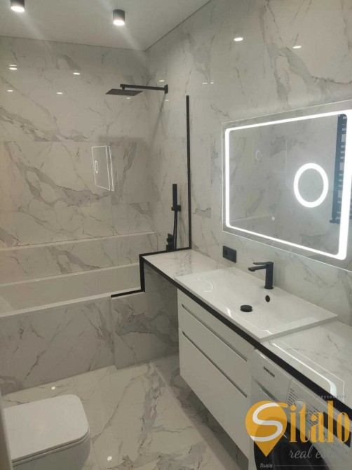 В квартирі зроблений євроремонт з високоякісних матеріалів. Санвузол обладнаний всією необхідною сантехнікою + пральна машина.