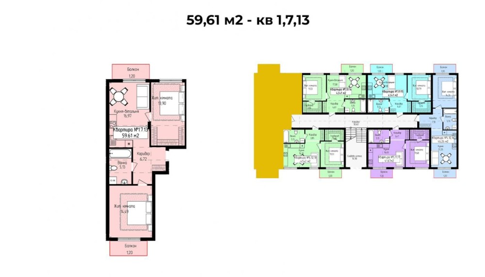 • Общая площадь 59.61 м2