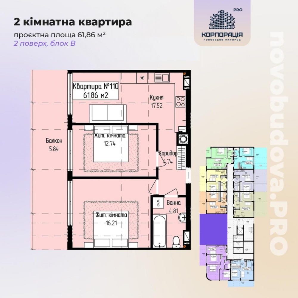 Продаж 2-км квартири, 61.86 м2, 2 поверх, ЖК "ЛАЙТ ПАРК" - фото 2