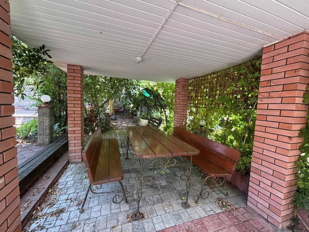 Територія доглянута, раціонально розділена на зону відпочинку, невеликий город, сад, спортивний майданчик, клумби з декоративними деревами та квітами