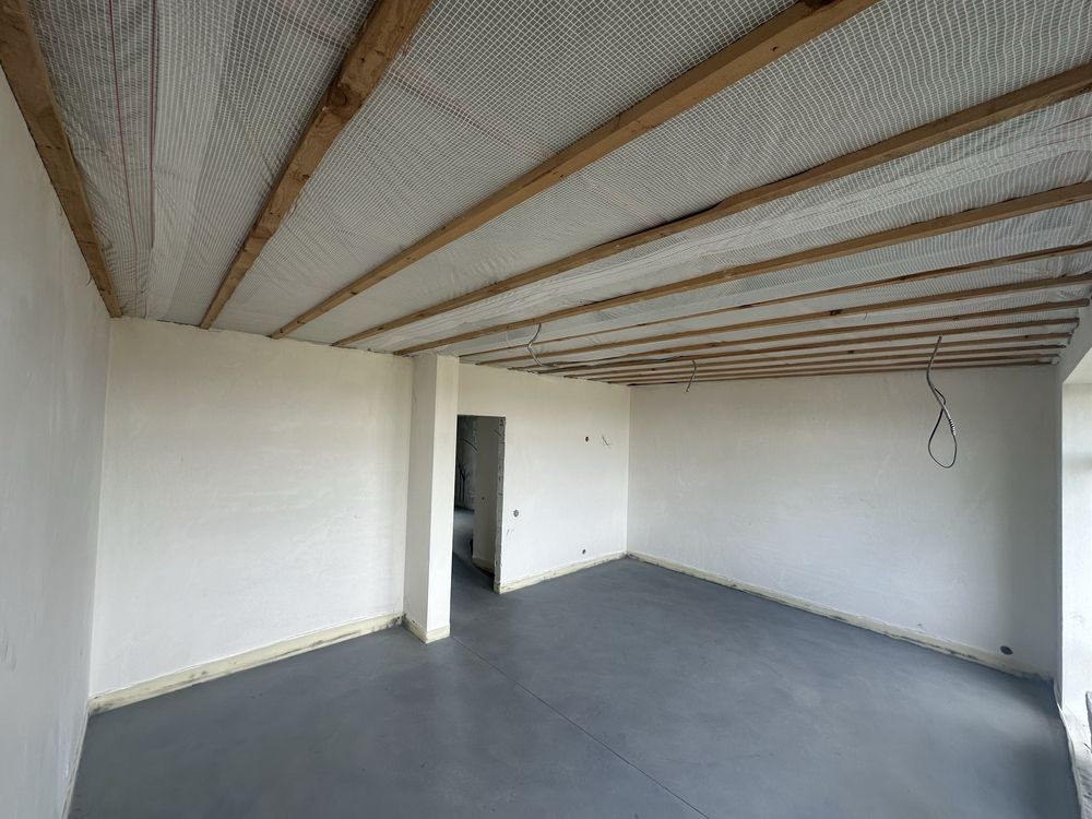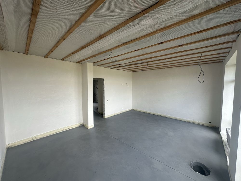 Виконано ремонт під чистове оздоблення, розведено електрику та сантехніку, тепла підлога по першому поверху на другому встановлені батареї.
