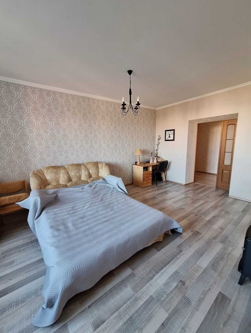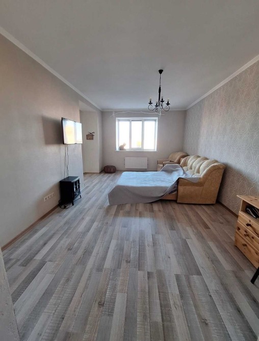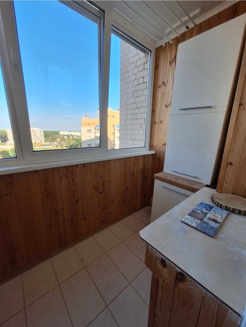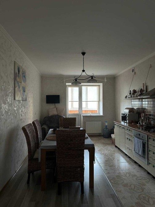 В квартирі велика кухня-вітальня з лоджією та дві окремі житлові кімнати.
