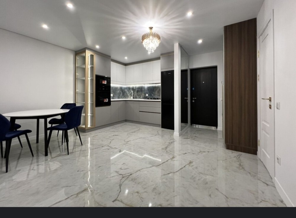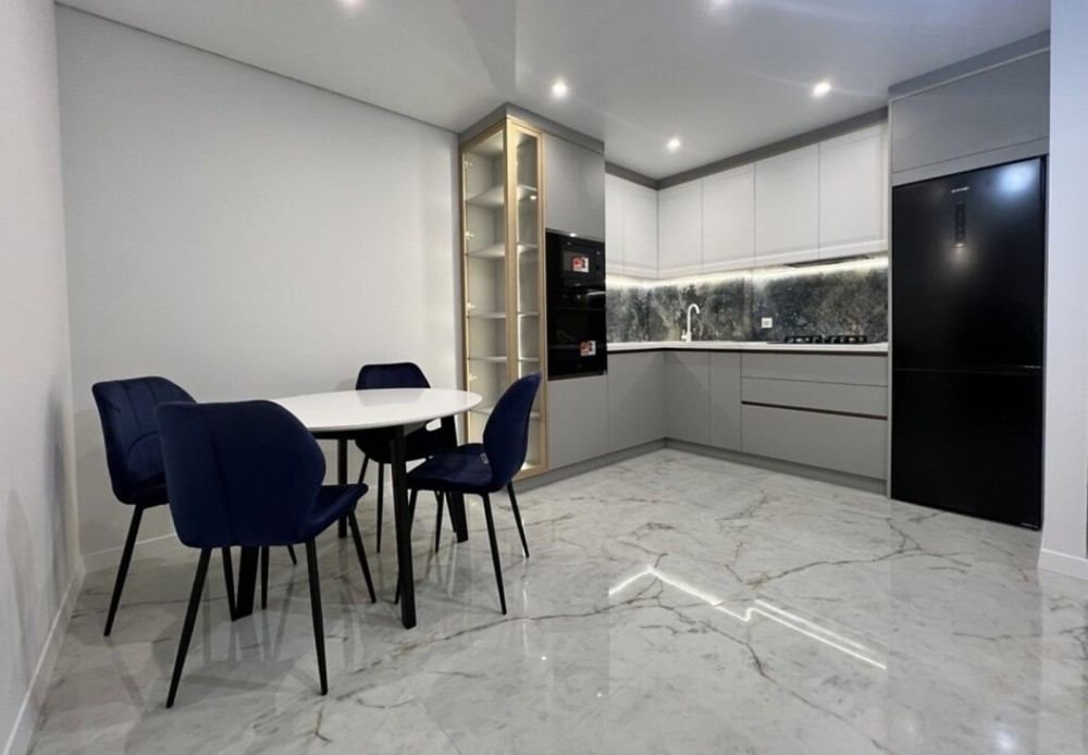 Квартира розташована на зручному третьому поверсі. Загальна площа 55,5 кв.м, велика кухня-студія та дві окремі кімнати. Квартира з повністю завершеними ремонтними роботами, частково облаштована меблями та побутовою технікою.