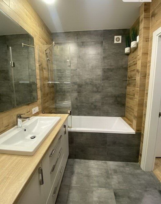 ---Санвузол 5 м²: підвісний унітаз Villeroy&Boch, сантехніка Grohe, техніка прихована (пральна машина, бойлер на 80 л), велика