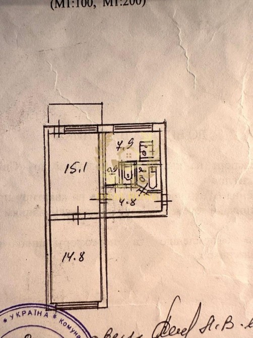 Площа: загальна 45.5 м² ( житлова 29.3 м² — кімнати, 7.9 м² — кухня)