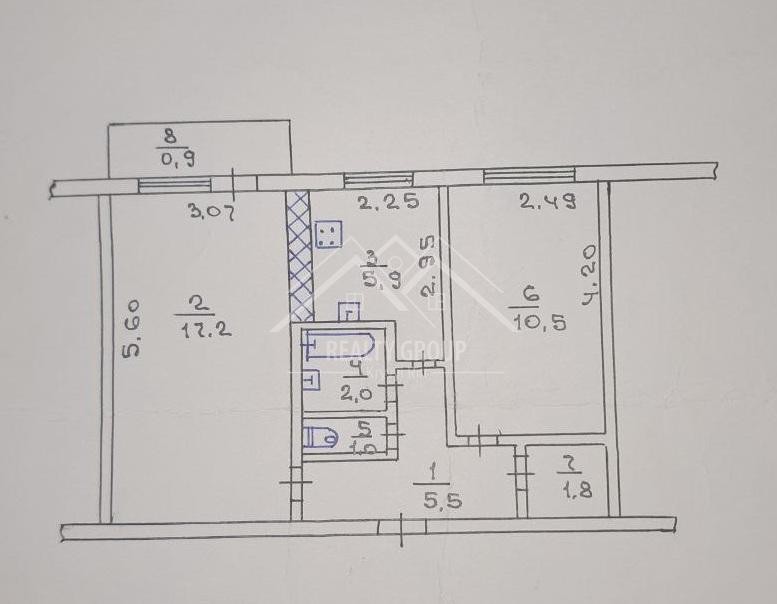 • Площадь кухни 5.9 м2