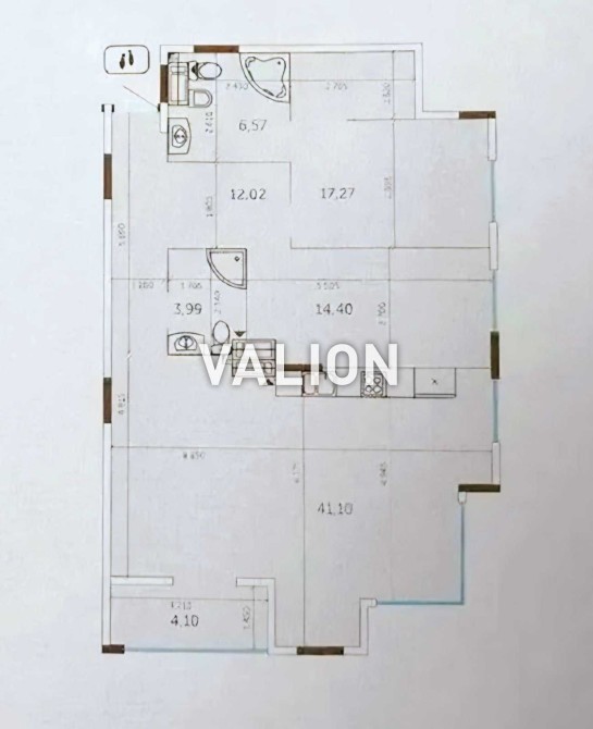 Площа: загальна – 97,40 кв.м, житлова – 31,68 кв.м, кухня – 41,10 кв.м.