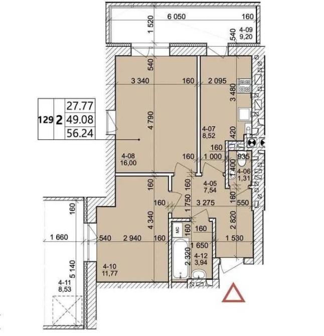 • Общая площадь 56 м2