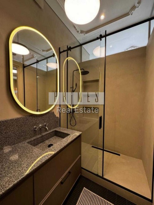 Душова кімната оздоблена італійським мармуром, що додає їй елегантності та вишуканості. Квартира також має місткі гардеробні та пральню, оснащену пральною та сушильною машинами.
