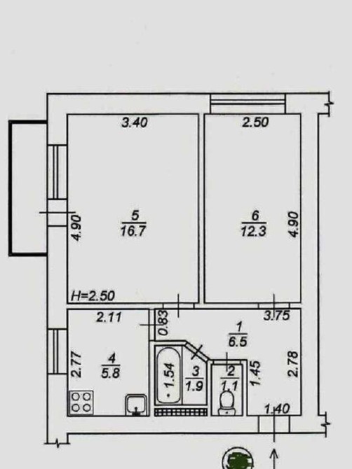 * Кухня - 5,8 м2