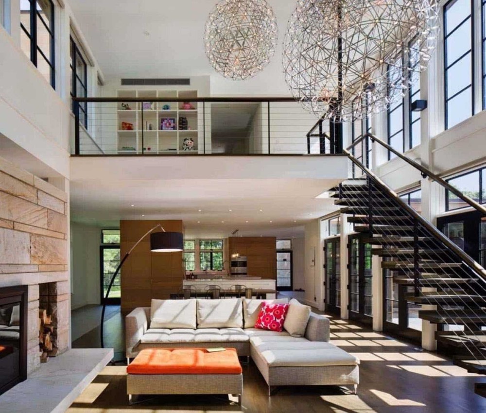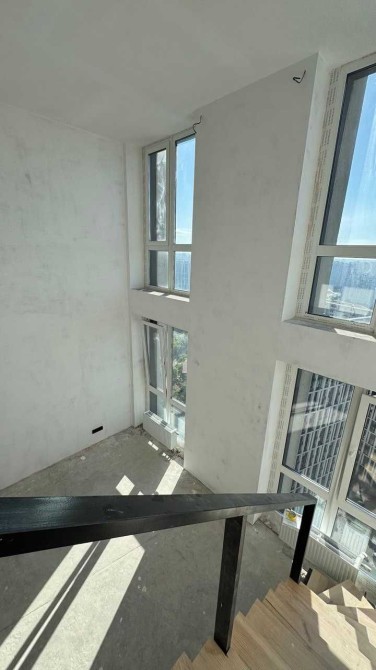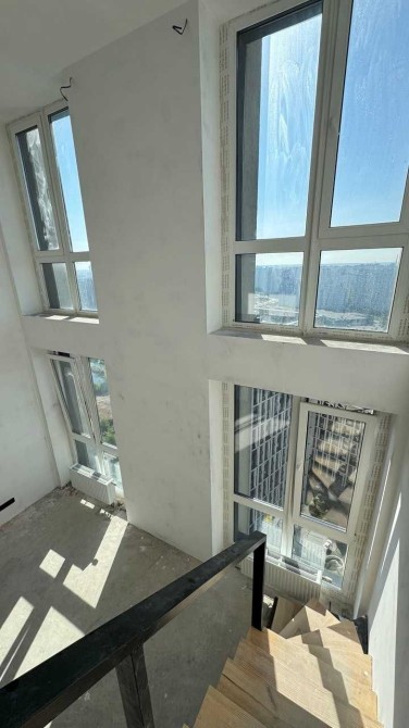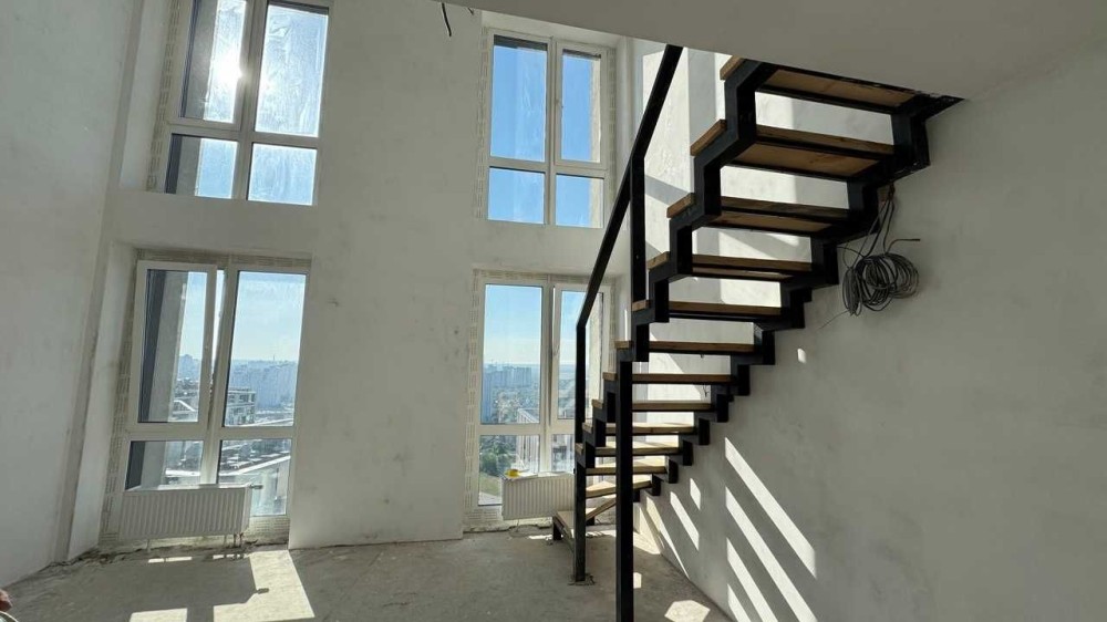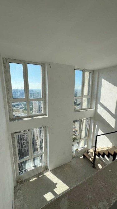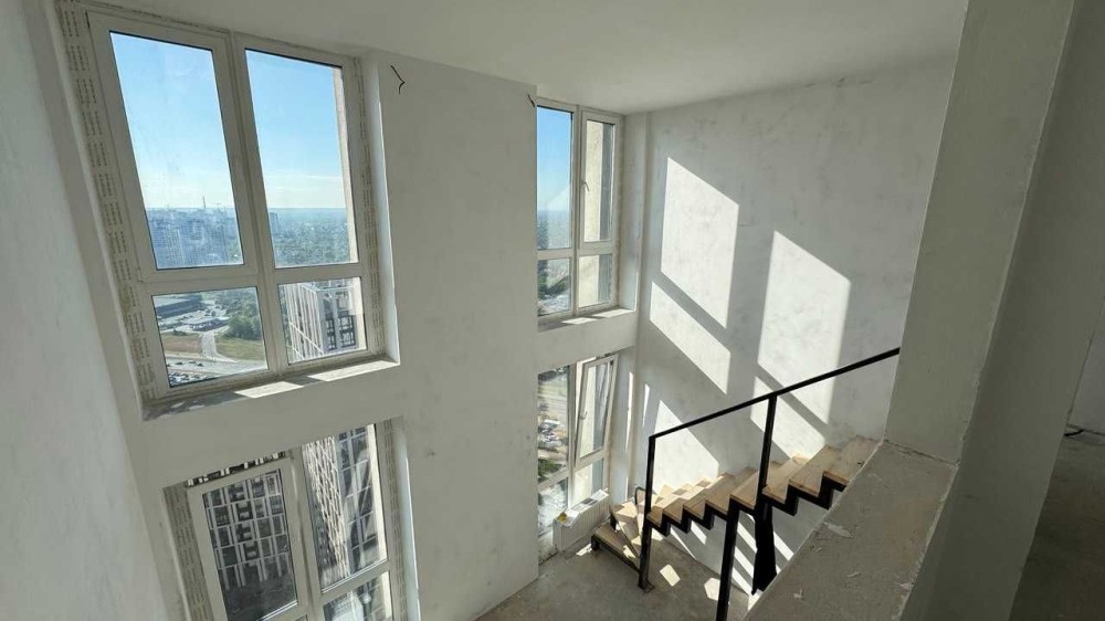 Квартира 2-рівнева з високими стелями та великою кількістю природного світла, панорамні вікна з вражаючим видом на місто і річку.