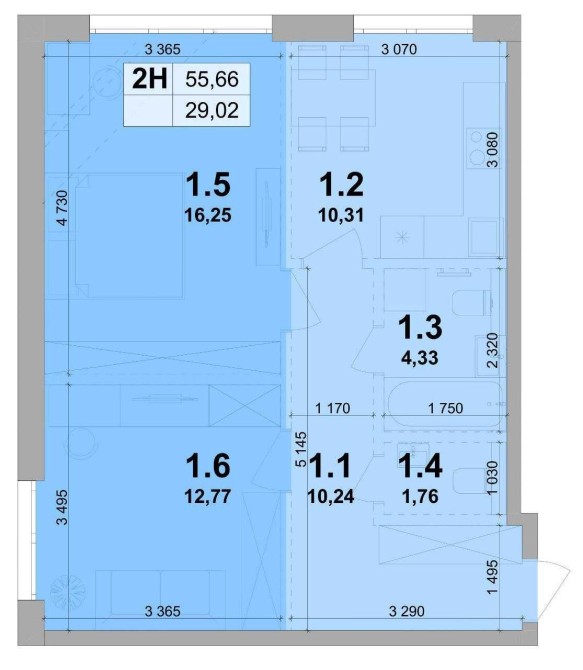 • Общая площадь 56 м2