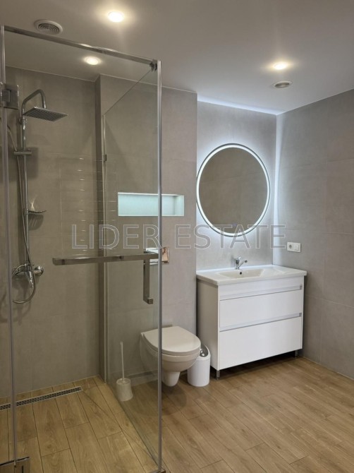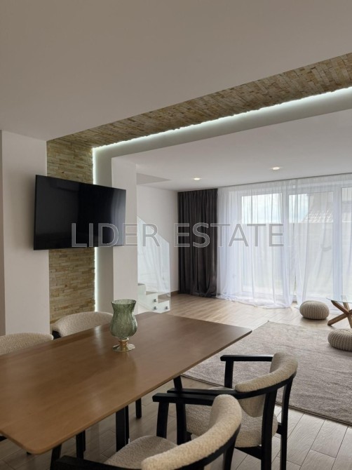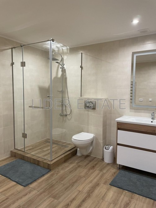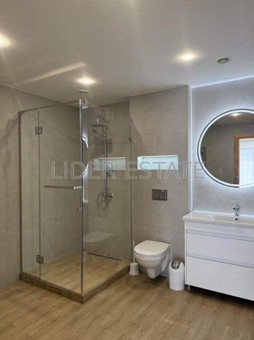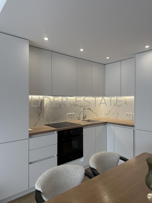 Простора кухня-студія з необхідною побутовою технікою. Панорамні вікна, що дарують чудовий краєвид на місто. У дворі сад та ландшафтний дизайн. Забезпечено безпеку: домофон, броньовані двері, відеонагляд, паркан.