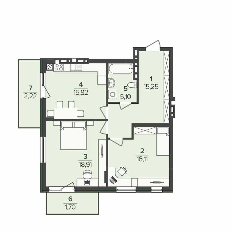 • Площадь кухни 15.82 м2