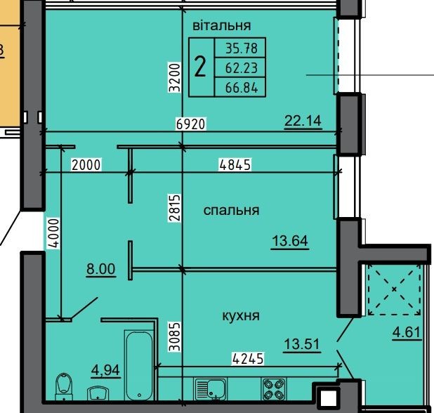• Общая площадь 66.84 м2