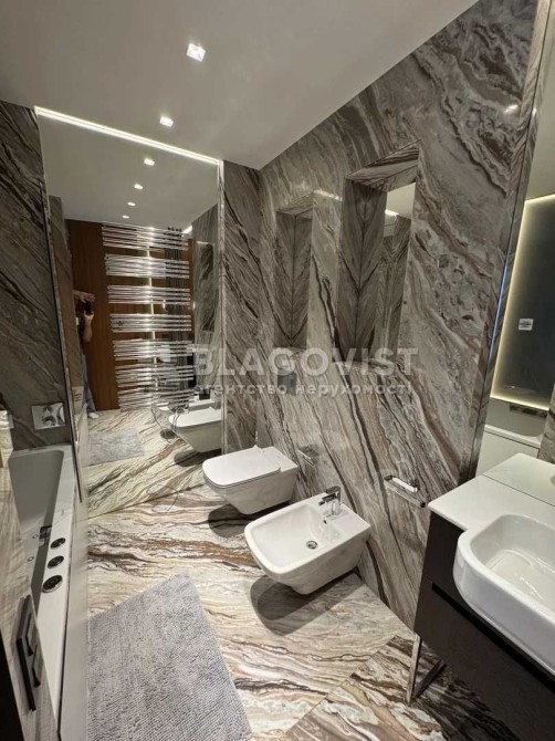 Планування та оснащення: Кухня: фільтр питної води, холодильник, варильна поверхня та духова шафа Asko, меблі–Німеччина, стільниця–кварц.Система приточно-витяжної вентиляції Maico з фільтром високої очистки та функцією зволоження повітря. Вітальня: кондиціонер Daikin з сенсорною функцією визначення положення людини, музична система Harman Kardon, TV. Спальня: стельовий проектор, Apple TV, кондиціонер. Підігрів підлоги у всій квартирі. Натуральний мармур у декорі.