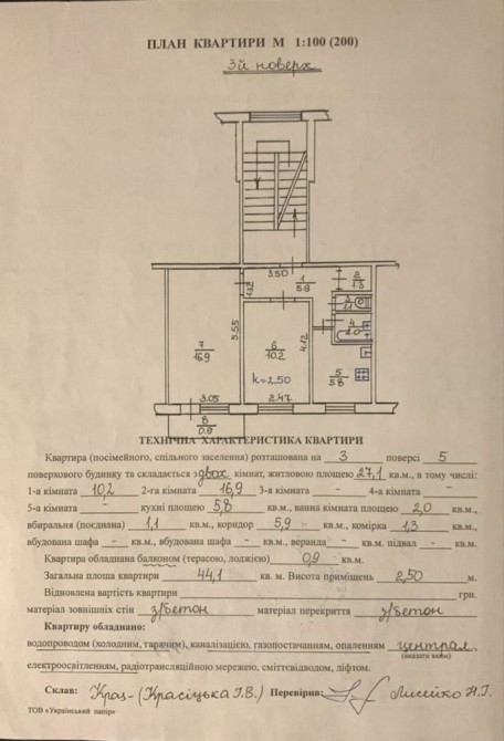 Загальна площа квартири 44.1 м.кв