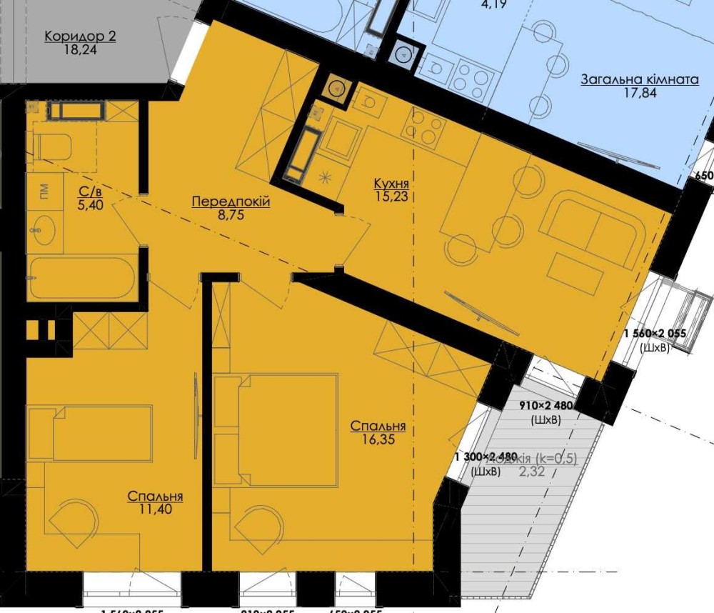 Квартира 59,45 м.кв. в ЖК “Атмосфера Premium”