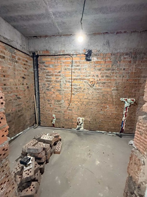 Стан після будівельників: штукатурка стін , максимальна розводка електрики робили для себе , котел, якісні вхідні двері та лічильники на всі комунікації , тепла підлога коридор,кухня, санвузол, зроблені всі виводи на сантехніку.