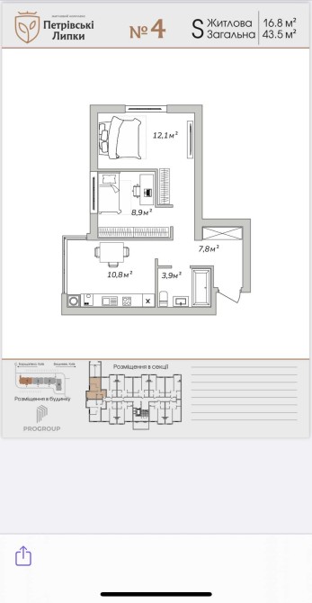Площа 46м2