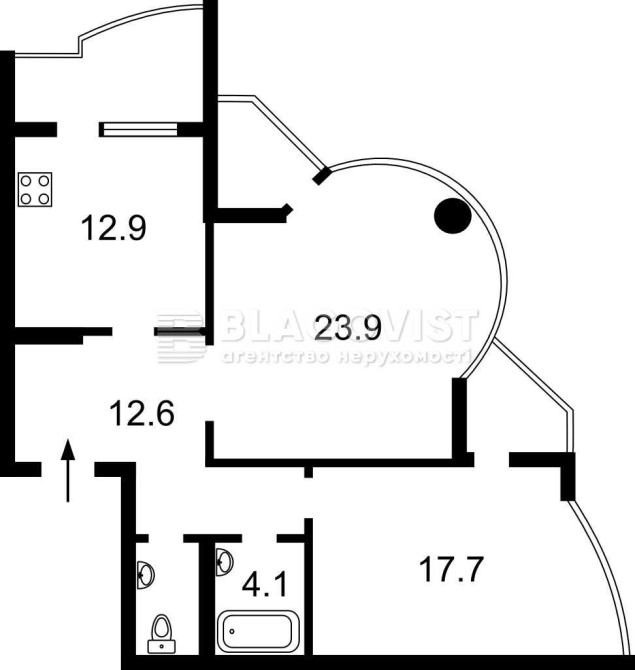 • Площадь кухни 12.9 м2