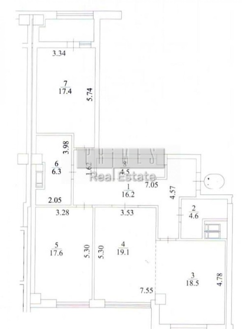 Квартира площею 108,6 м² розташована на 7 поверсі 14-поверхового будинку.