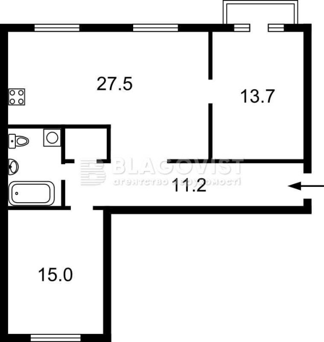 • Площадь кухни 27.5 м2