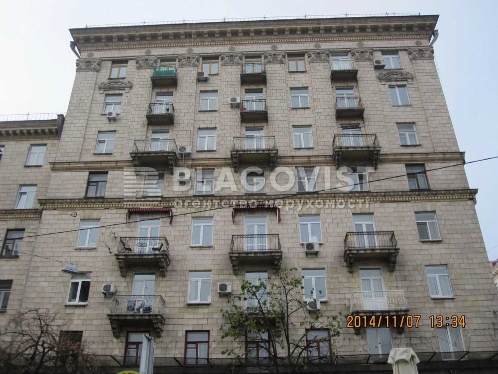 Монументальна сталінка на розі Є.Чикаленка (Пушкінська) та Прорізної.