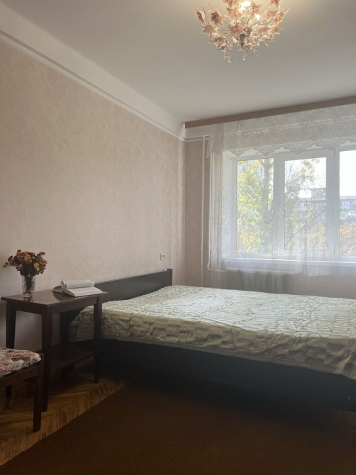 вул. Леся Курбаса 14а 5/9 пов. 60/41/7.5 панельний будинок, чеський проект. Суміжно-роздільна у відмінному стані, косметичний ремонт. Обладнана всім необхідним, для комфортного життя: холодильник, пральна машина автомат, бойлер, двоспальне ліжко,вікна склопакети, балкон 10 метрів, засклений склопакетами. двері броньовані.поли кахель в коридорі та на кухні.санвузел окремий. Перепланувань немає. Розвинена інфраструктура поруч школа, дитячий садочок, супермаркет ,парк, зупинки громадського транспорту. До метро Святошин 15 хв.