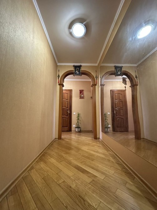 Функціональне планування: три окремі кімнати, кухня, засклений балкон, два суміщені санвузли. Додатковою перевагою є наявність власної сауни.
