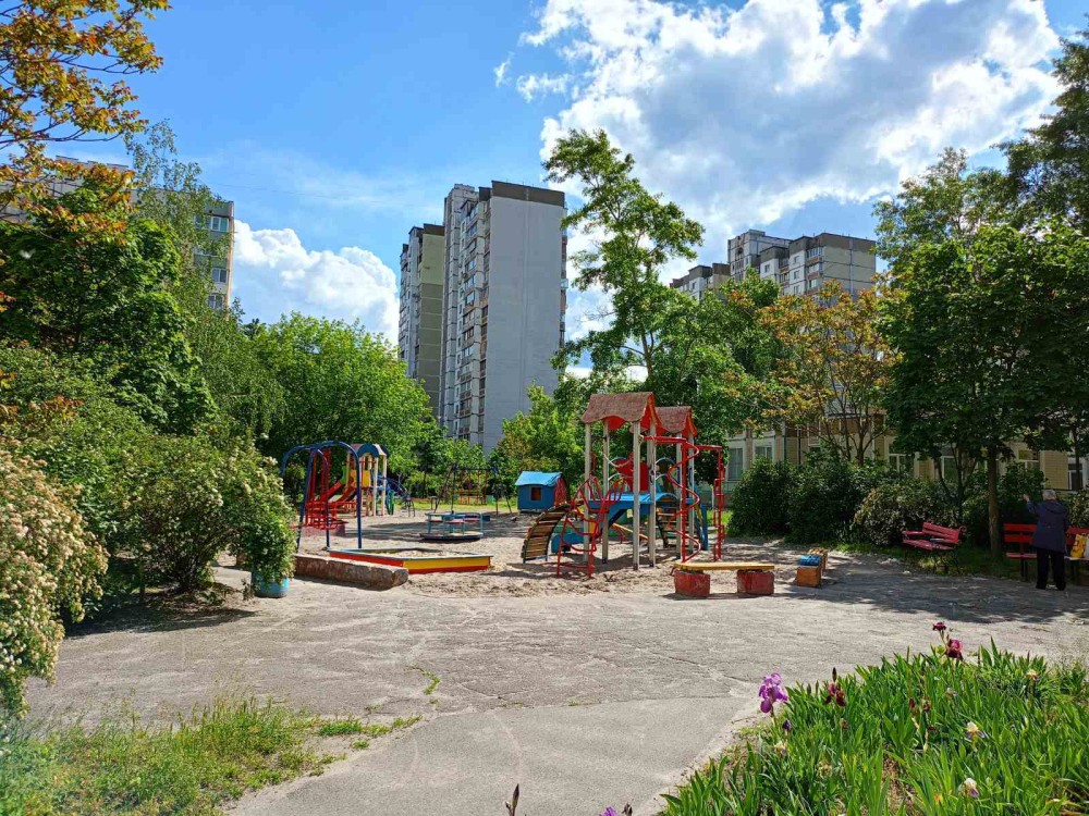 Затишний двір з дитячими майданчиками та місцями відпочинку, достатньо паркувальних місць. Під'їзд, ліфт та поверх чисті. Броньовані вхідні двері, тамбур на 2 квартири.