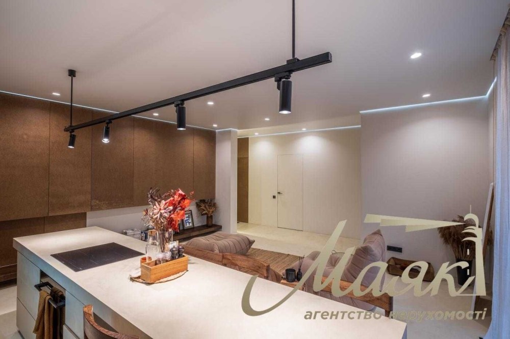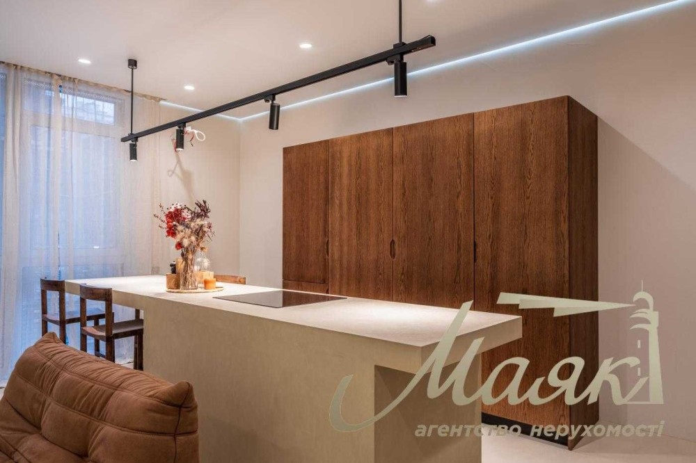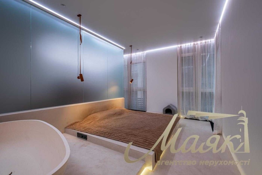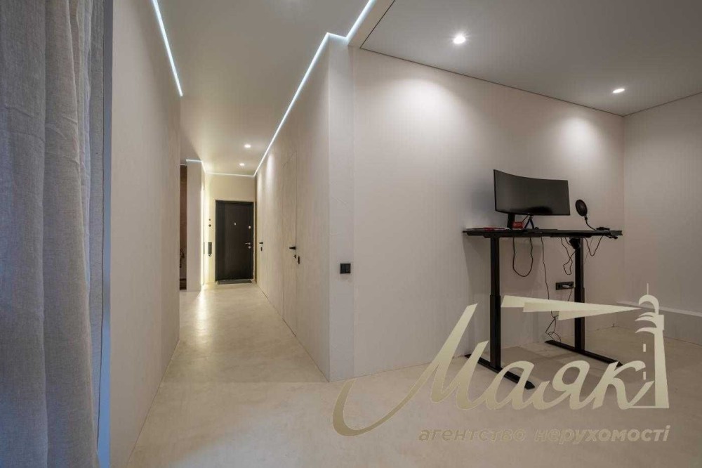 Квартира з сучасним дизайнерським ремонтом преміум-класу, виконаним за індивідуальним проєктом. Раціональне планування з акцентом на простір, світло та приватність.