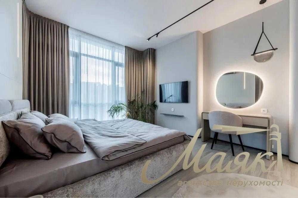 Квартира з дизайнерським ремонтом преміум-класу, виконаним за індивідуальним проєктом. Висота стель — 2,9 м, двері прихованого монтажу «під стелю», тепла підлога (5 зон), радіатори інтегровані в інтер’єр.