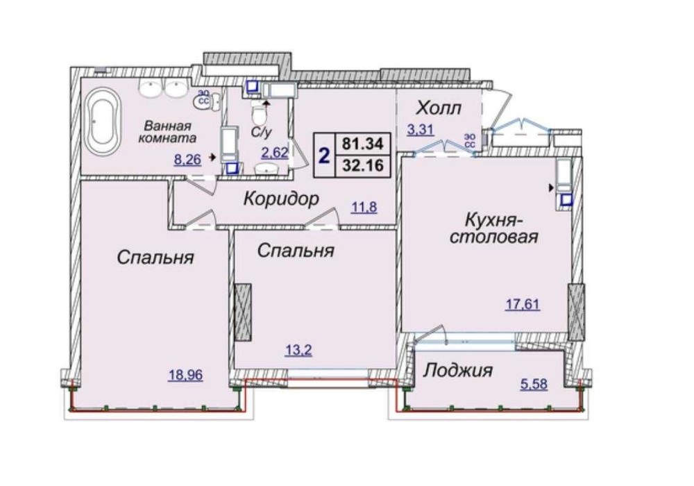 • Общая площадь 81 м2