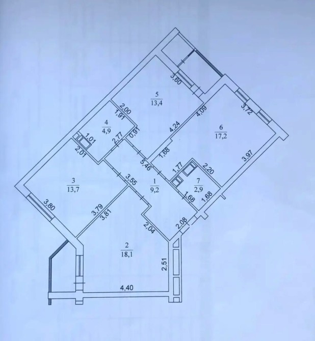 Раціональне планування квартири передбачає три окремі просторі кімнати, кухню з виходом на балкон, два самостійних санвузли та зручний великий коридор.