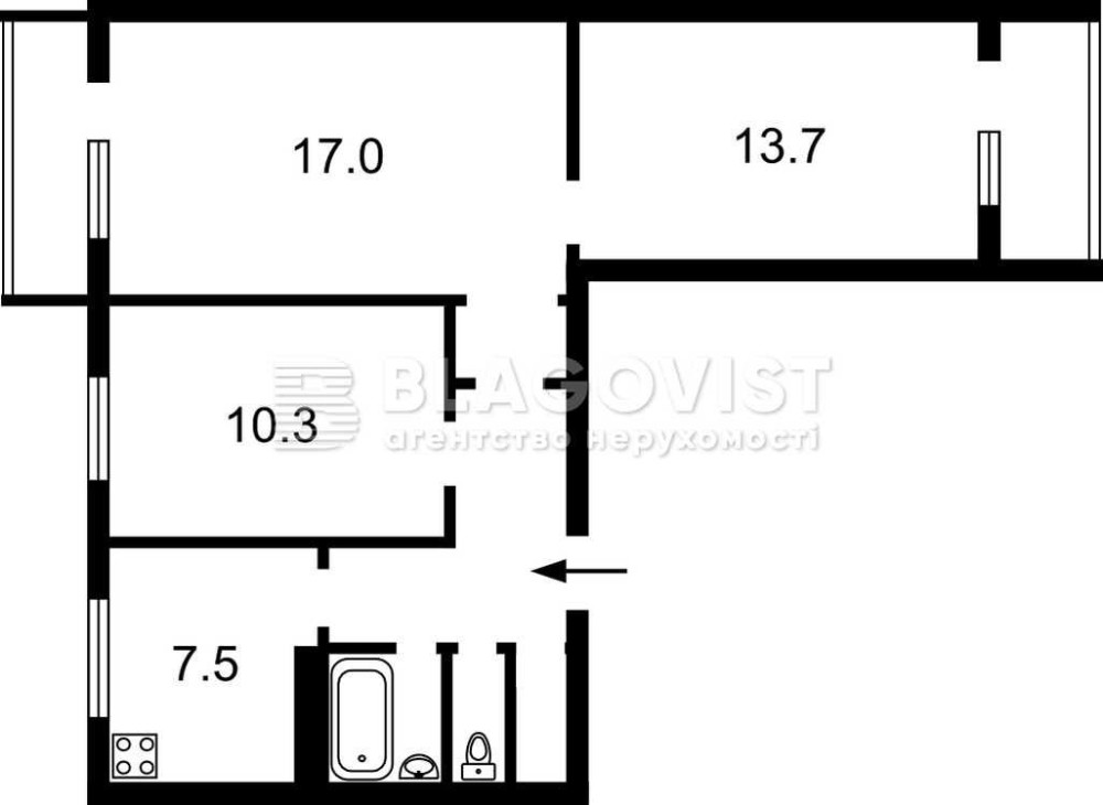 • Трехкомнатная