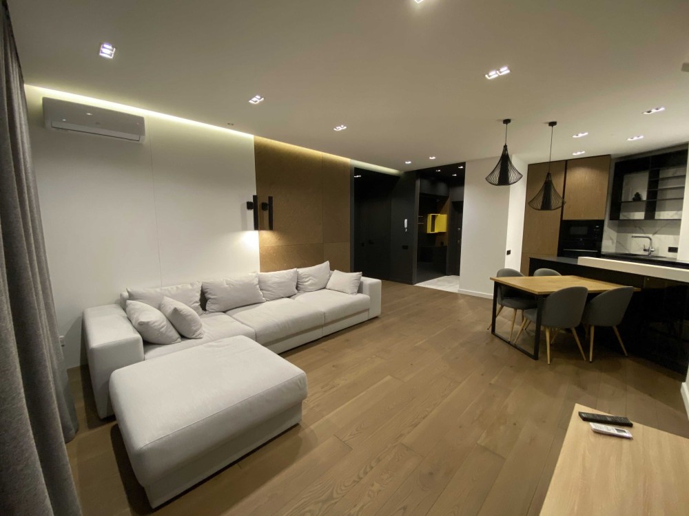 Дизайнерський ремонт, робився з розрахунку на власне проживання, робили із якісних матеріалів, встановлювали дорогу техніку, меблі, сантехніку та освітлення. Шукали найкращих майстрів для виконання. Підігрів підлоги в кухні, коридорі та санвузлі. До ремонту підходили дуже прискіпливо.