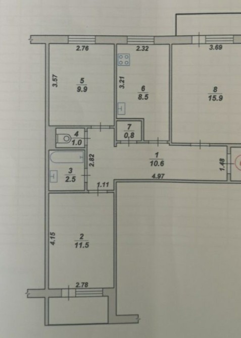 • Площадь кухни 9 м2