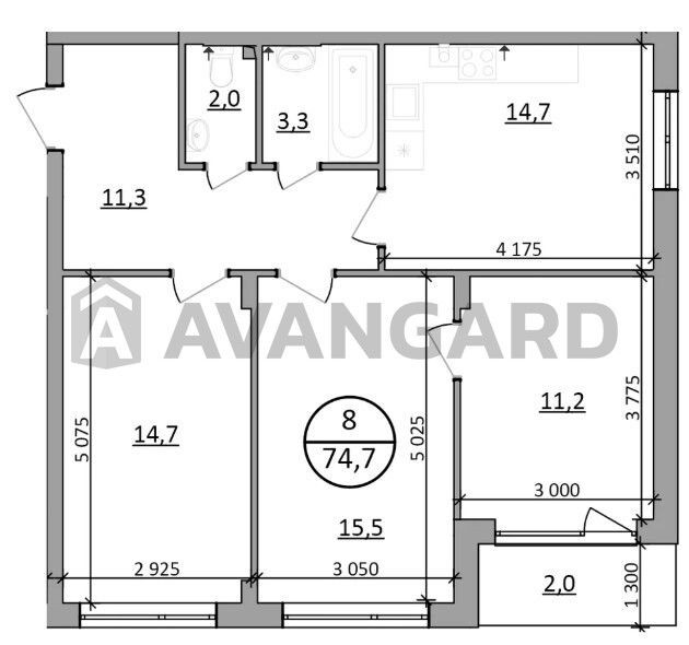 Площа квартири: 74.7м