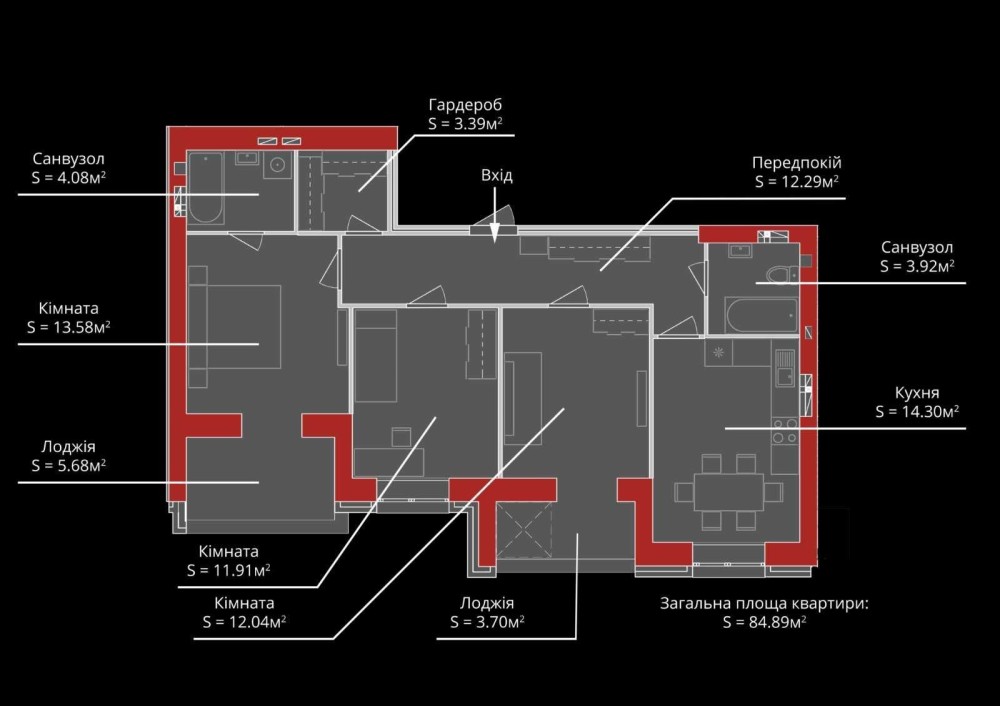 • Общая площадь 90 м2