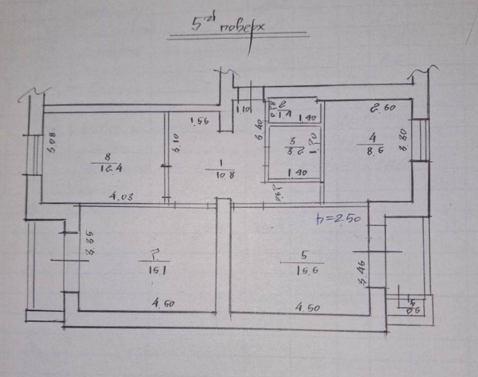 Цегла, площа 70,4 м2, кухня 8,6м2, на 5-у поверсі 5-ти поверхового будинку.