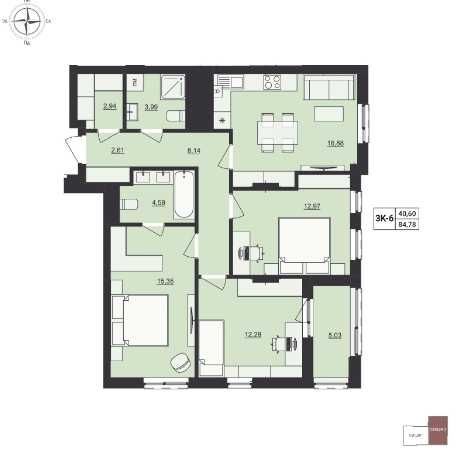 • Общая площадь 86.7 м2