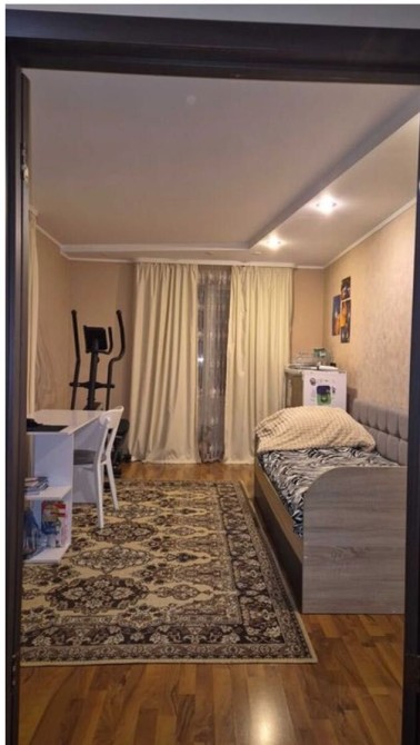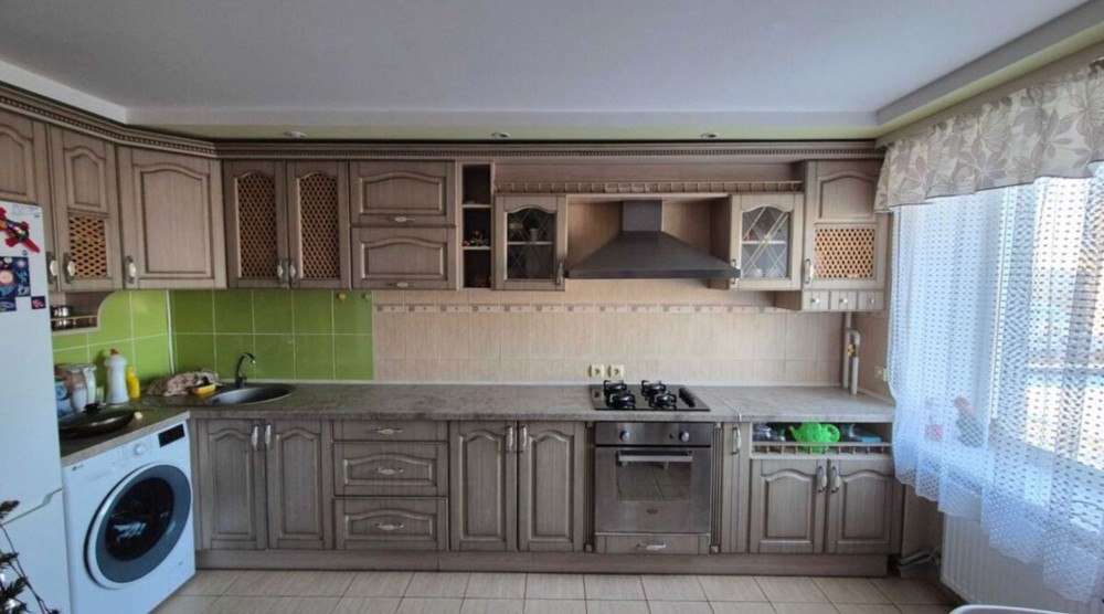 - Меблі та техніка: Вбудована кухня. Кондиціонер. У квартирі залишаються: біла шафа, тренажер, холодильник та пральна машина.
