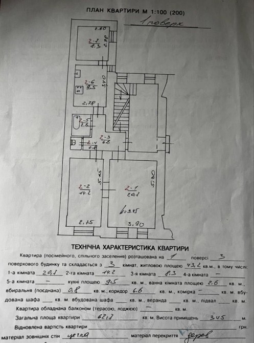 Площа — 62,7 м². Роздільне планування.