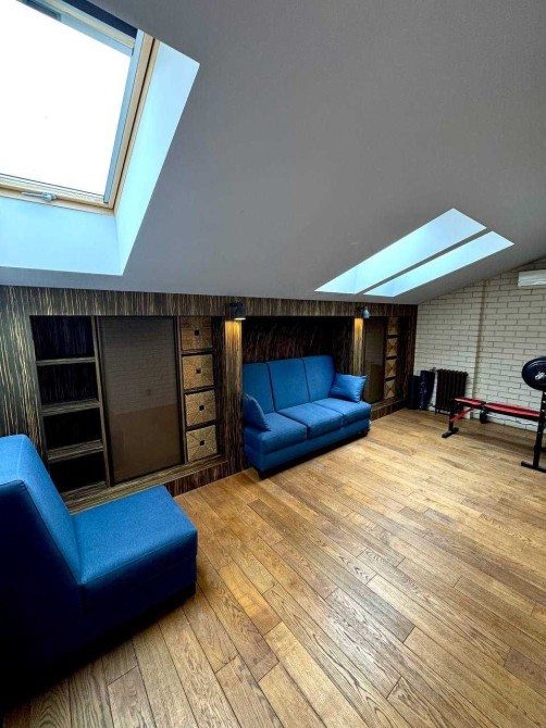 На другому мансардному поверсі: кабінет, гостьова, та санвузол, є вихід на дах