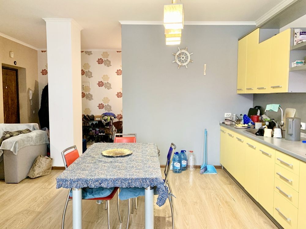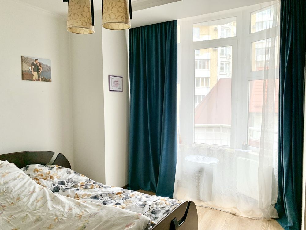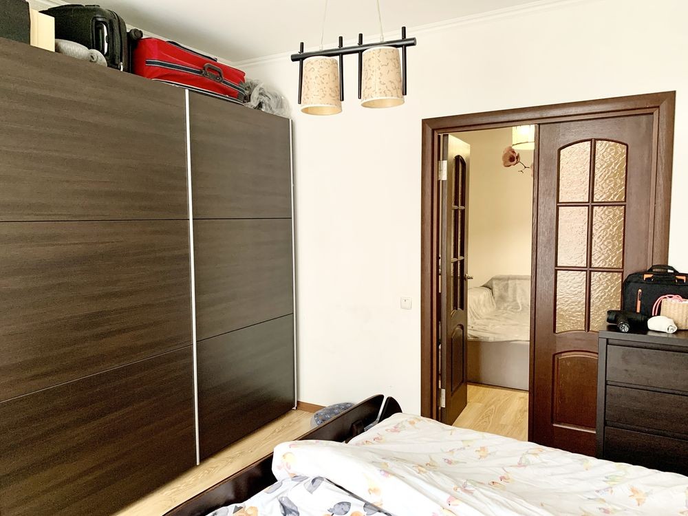 Складається з трьох окремих кімнат - для кожного члена сімʼї своя спальня, велика кухня їдальня з виходом на балкон і два санвузли.