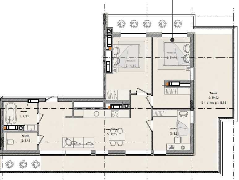 • Площадь кухни 30 м2